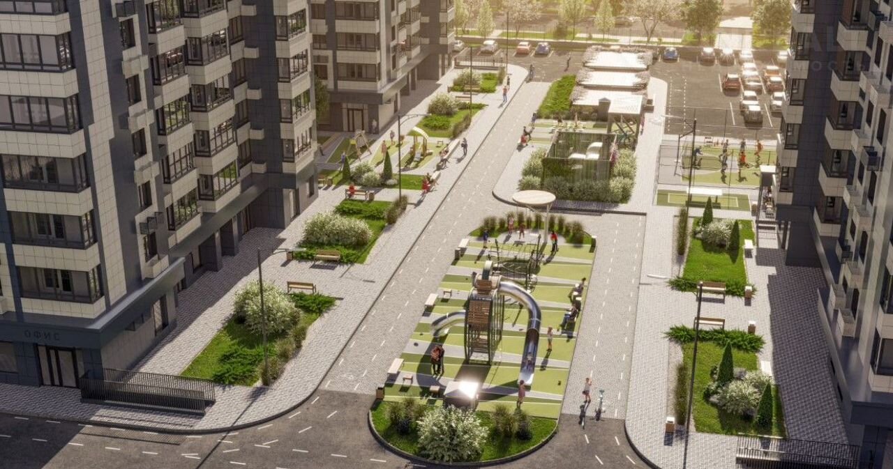 Современные спортивные и детские площадки гармонично дополняют архитектурный ансамбль комплекса и порадуют жильцов своей архитектурой.