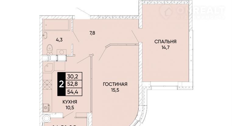 Общая площадь 54.2 м2