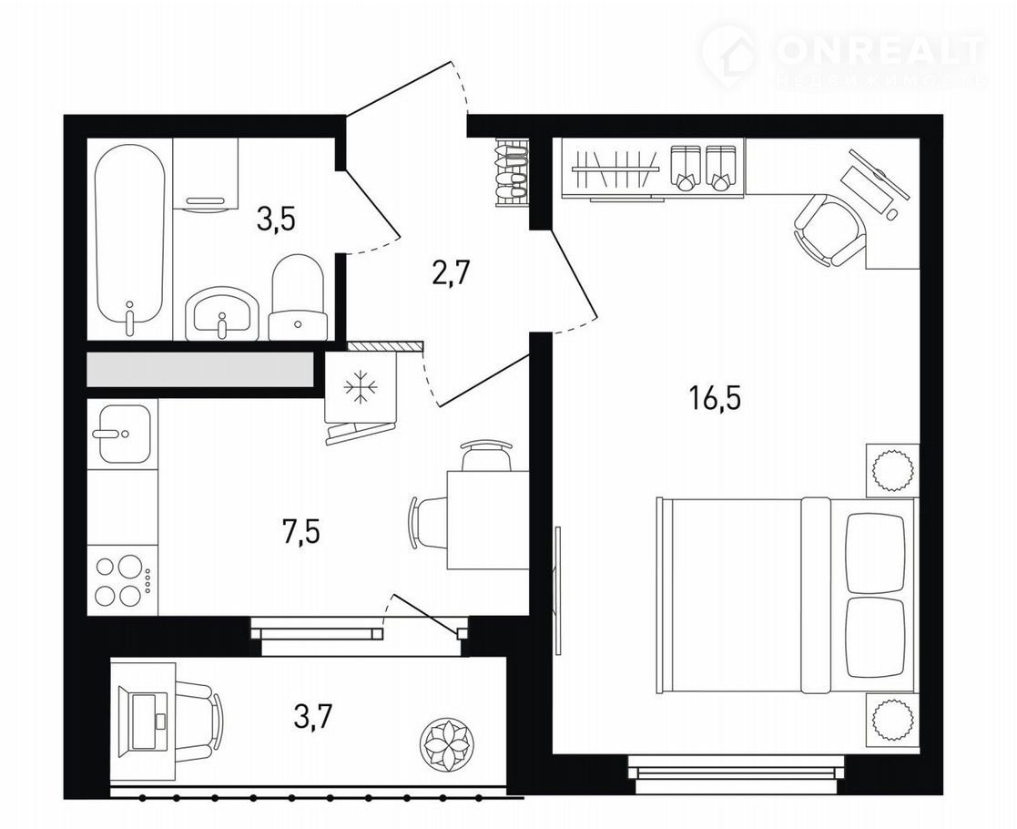 Балкон, лоджия 1 лоджия