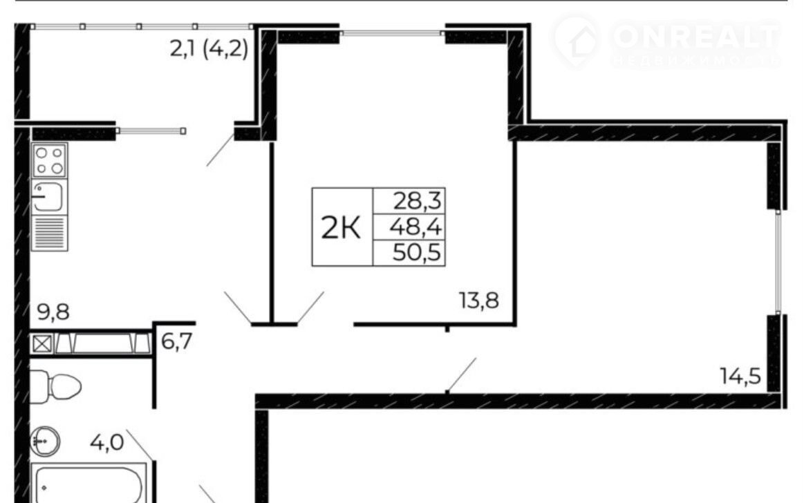 Общая площадь 51.3 м2