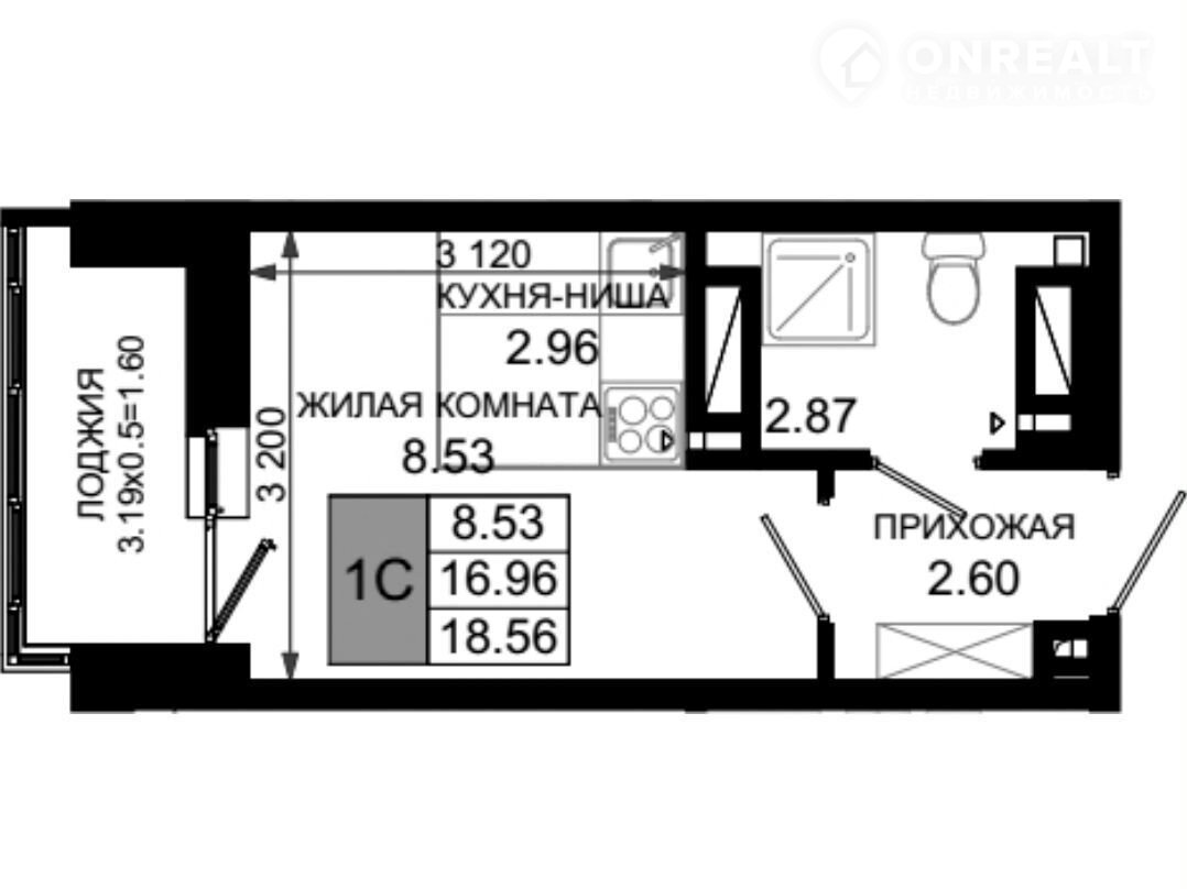Общая площадь 18.6 м2