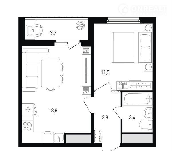 Балкон, лоджия 1 балкон