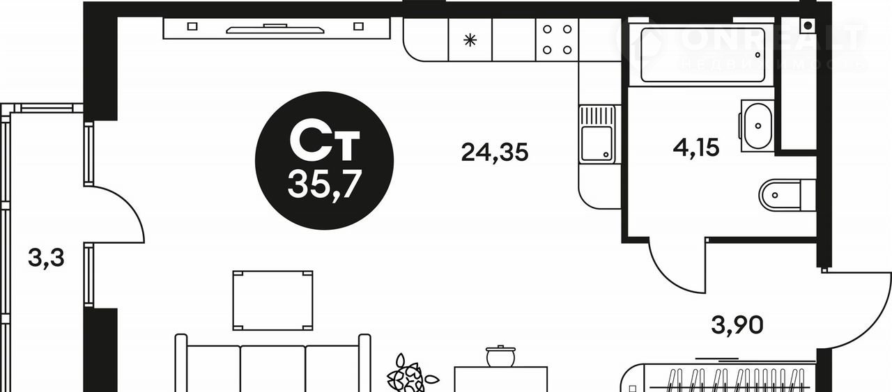 Общая площадь 35.7 м2