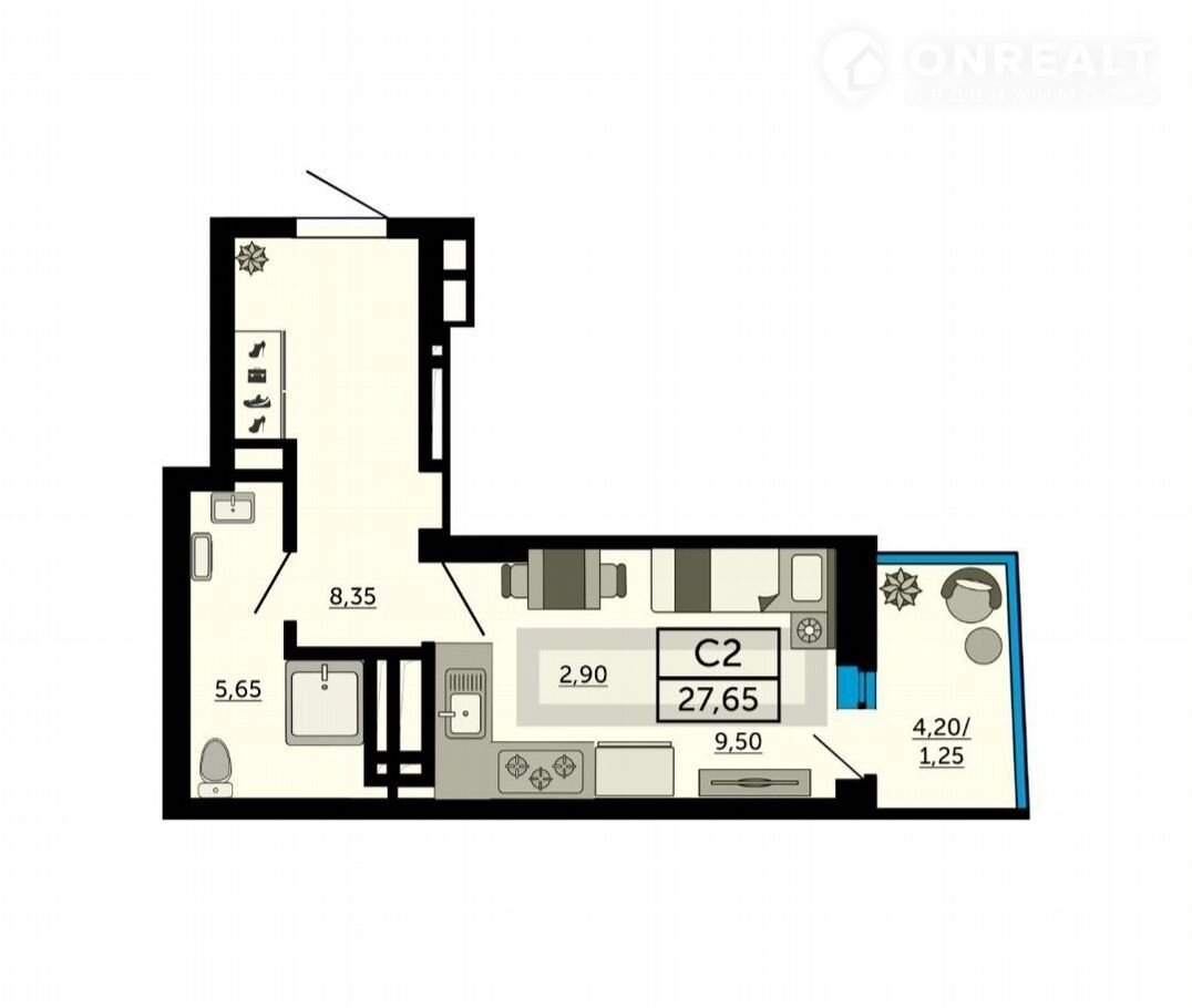 Общая площадь 27.6 м2