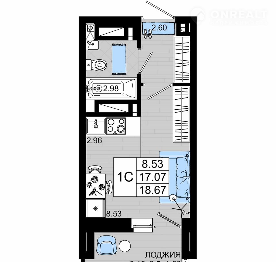 Балкон, лоджия 1 лоджия