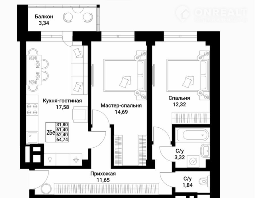 • Только полноценные планировки (1-3 комнаты)