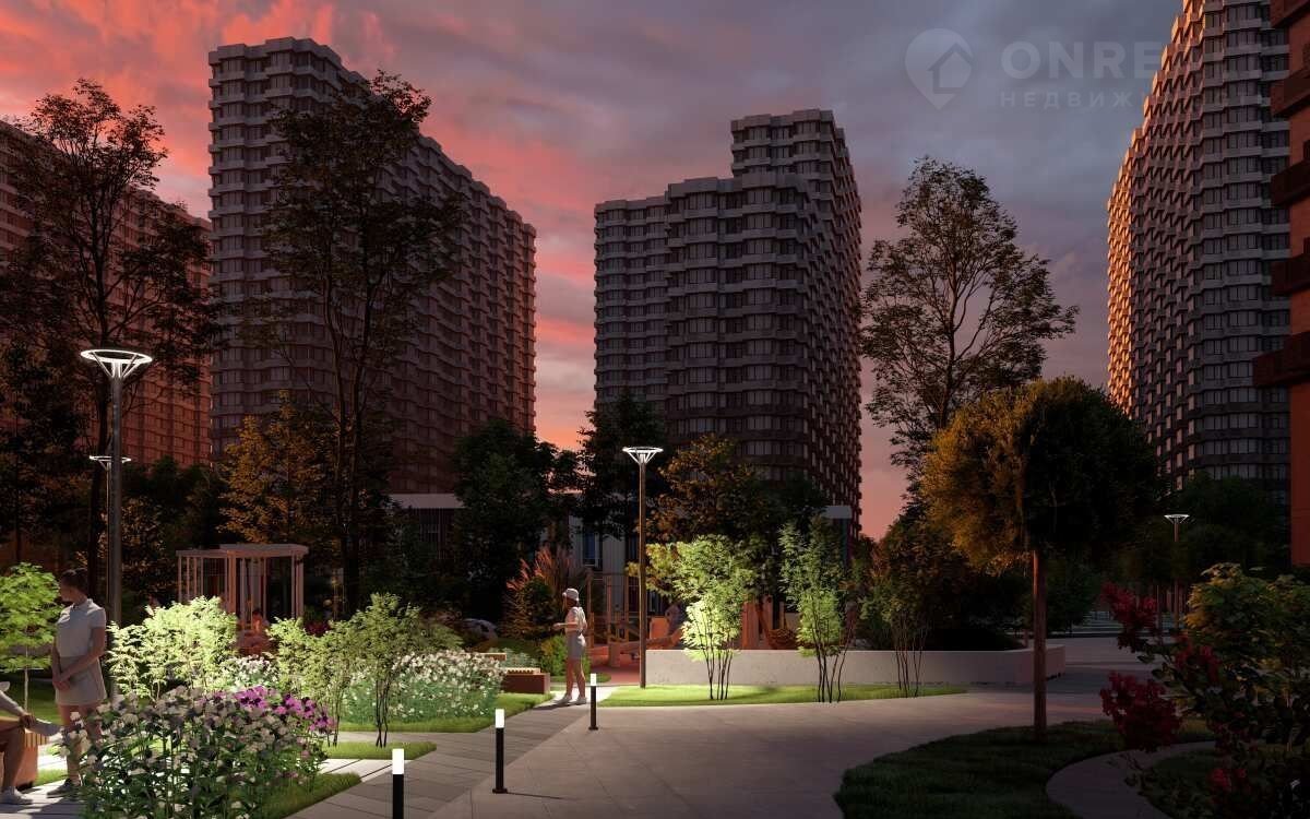 Ландшафтный дизайн территории, прогулочная аллея, игровые площадки. Подземный паркинг.