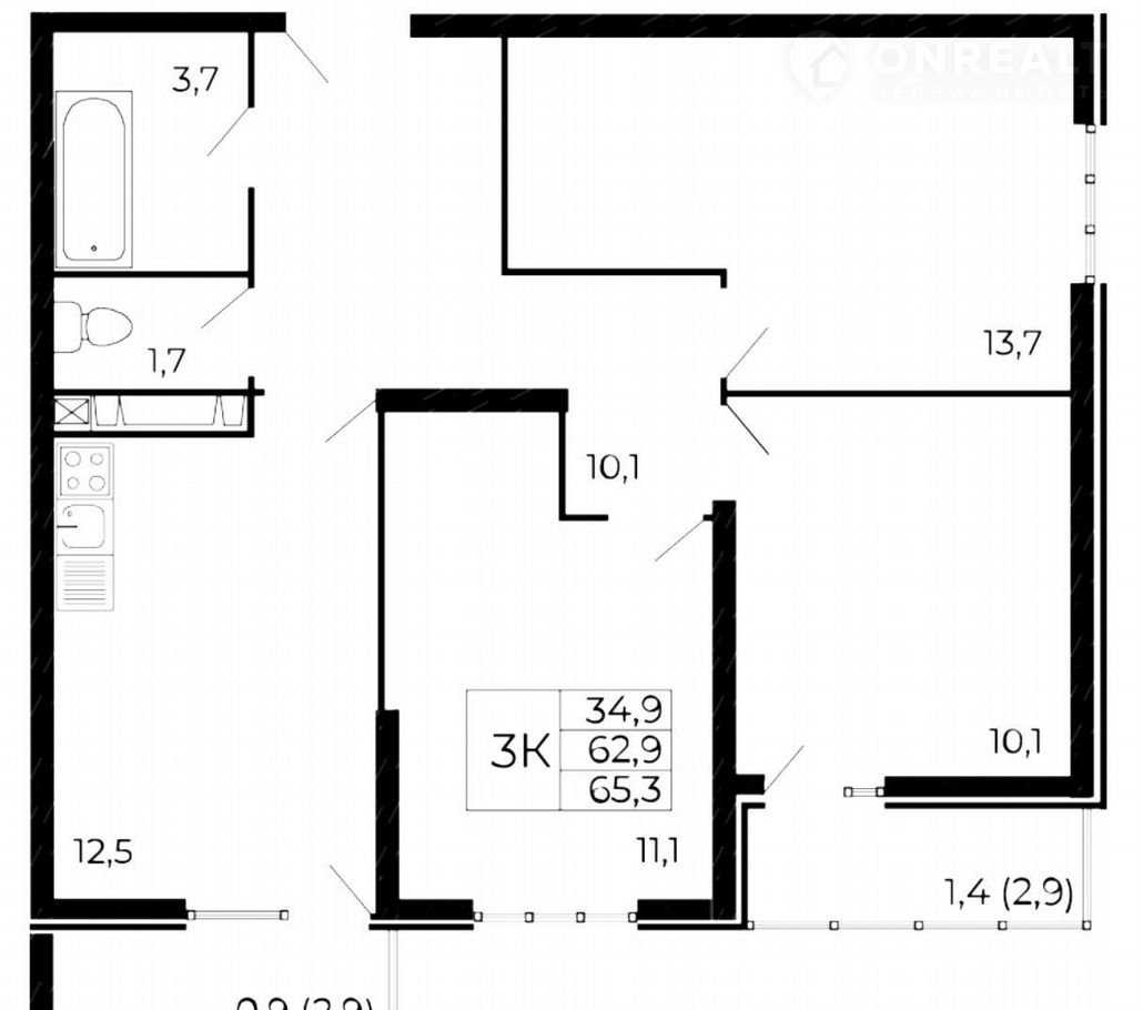 Жилая площадь 34.9 м2
