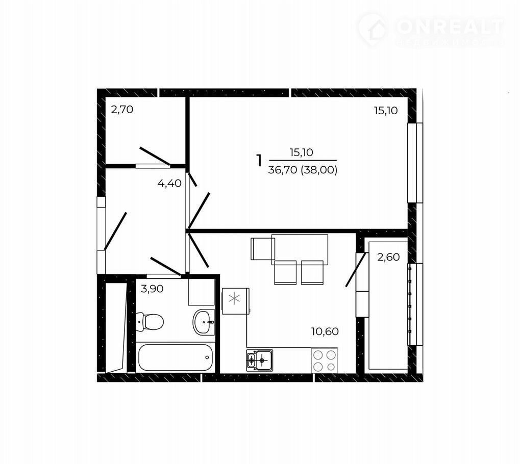 Общая площадь 38 м2