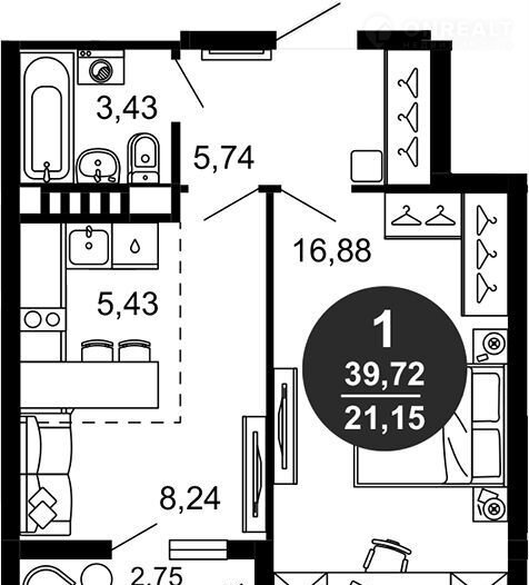 Количество комнат 1