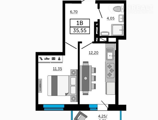 Общая площадь 35.4 м2