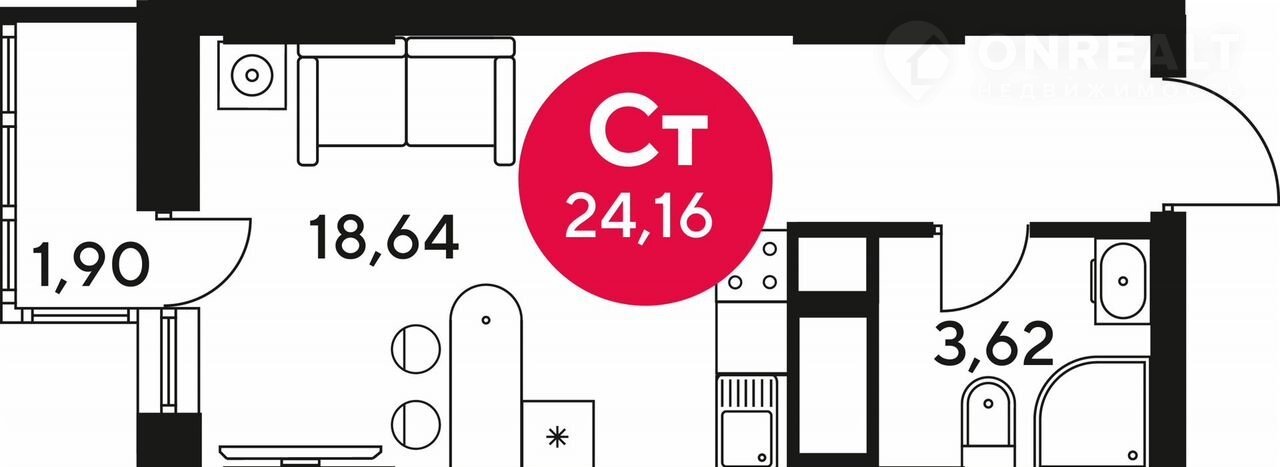 Общая площадь 24.1 м2