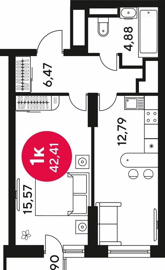 Общая площадь 42.3 м2
