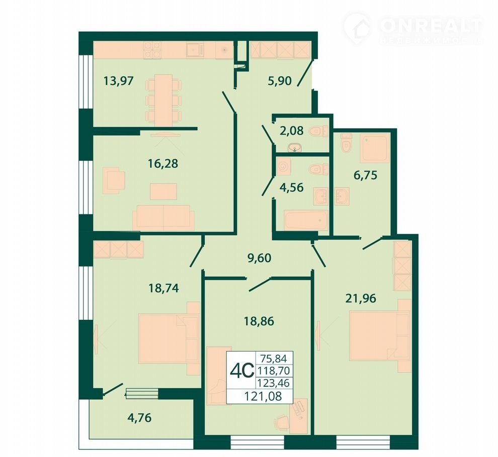 Общая площадь 121.1 м2