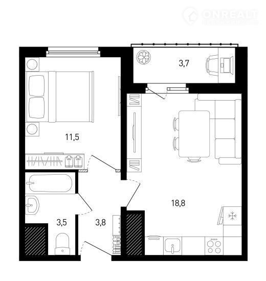 Балкон, лоджия 1 балкон