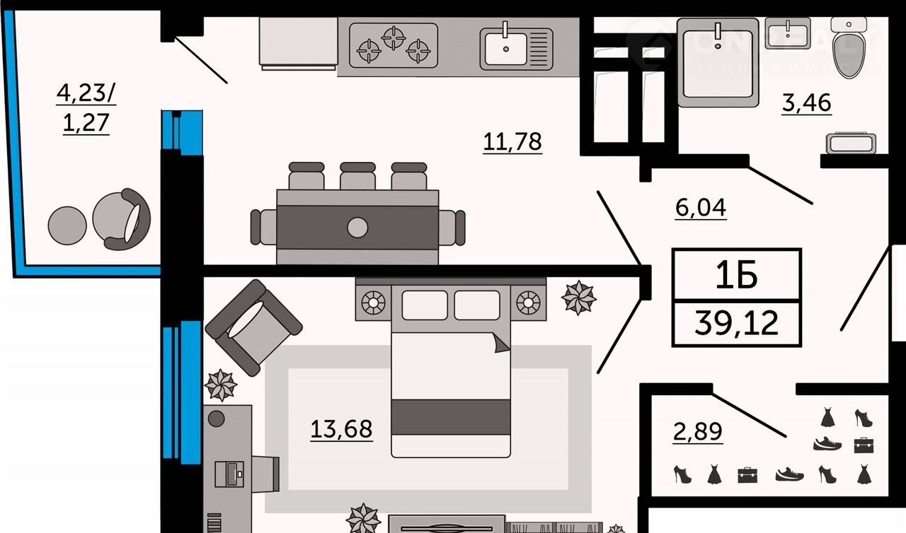 1-комнатная квартира, 39.7 м2, этаж 22 / 32, на продажу в Ростове-на-Дону