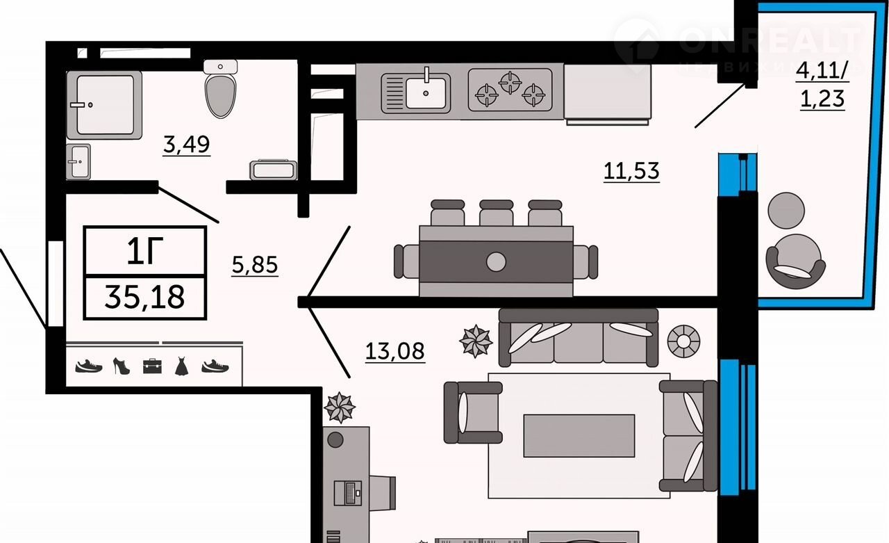 Общая площадь 35 м2