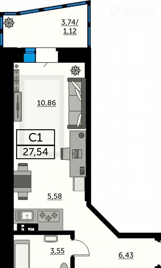 Общая площадь 27.5 м2