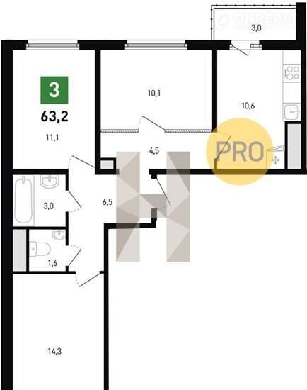 Общая площадь 63 м2