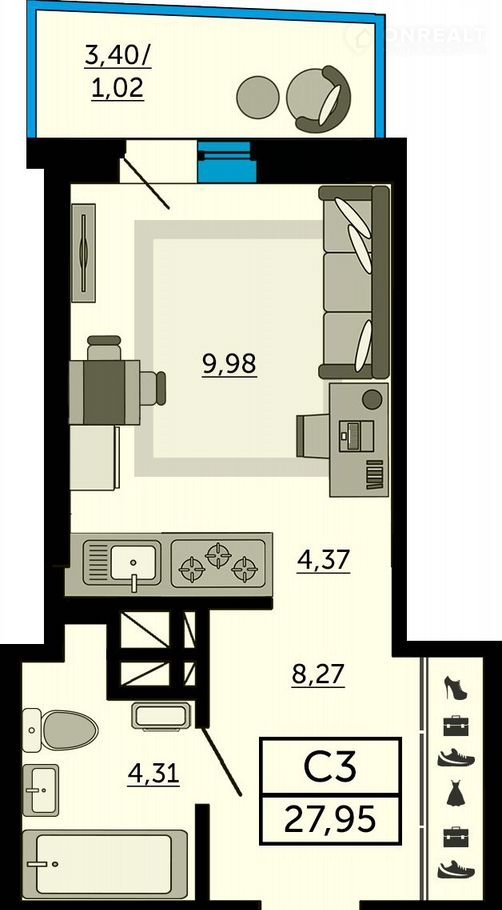 Общая площадь 28 м2