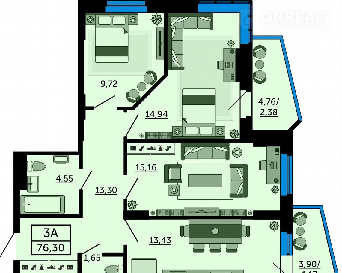 Общая площадь 76.2 м2