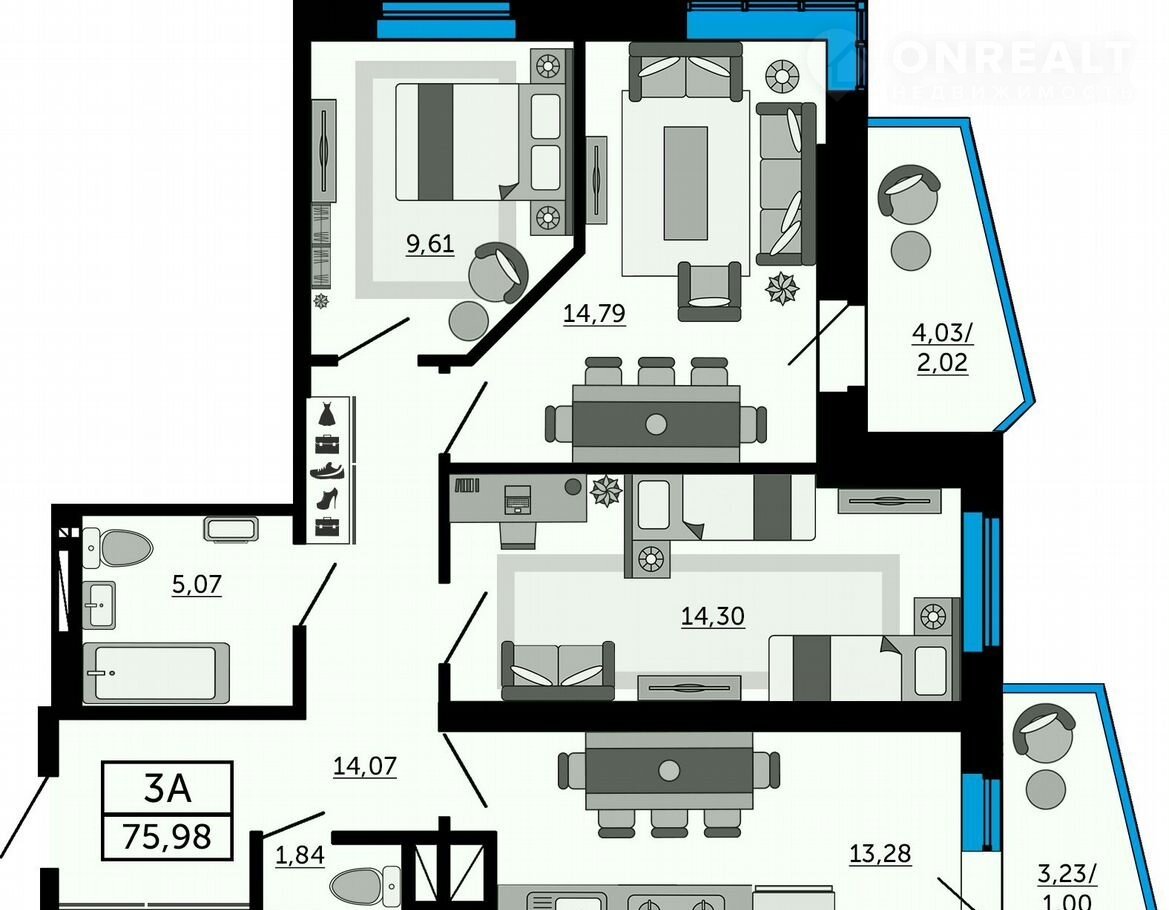 Общая площадь 76 м2