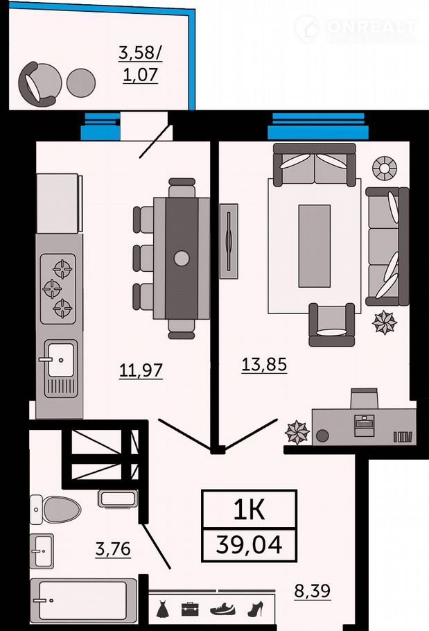Общая площадь 39 м2