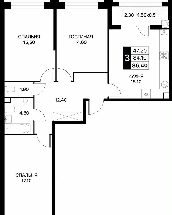 Общая площадь 86.4 м2