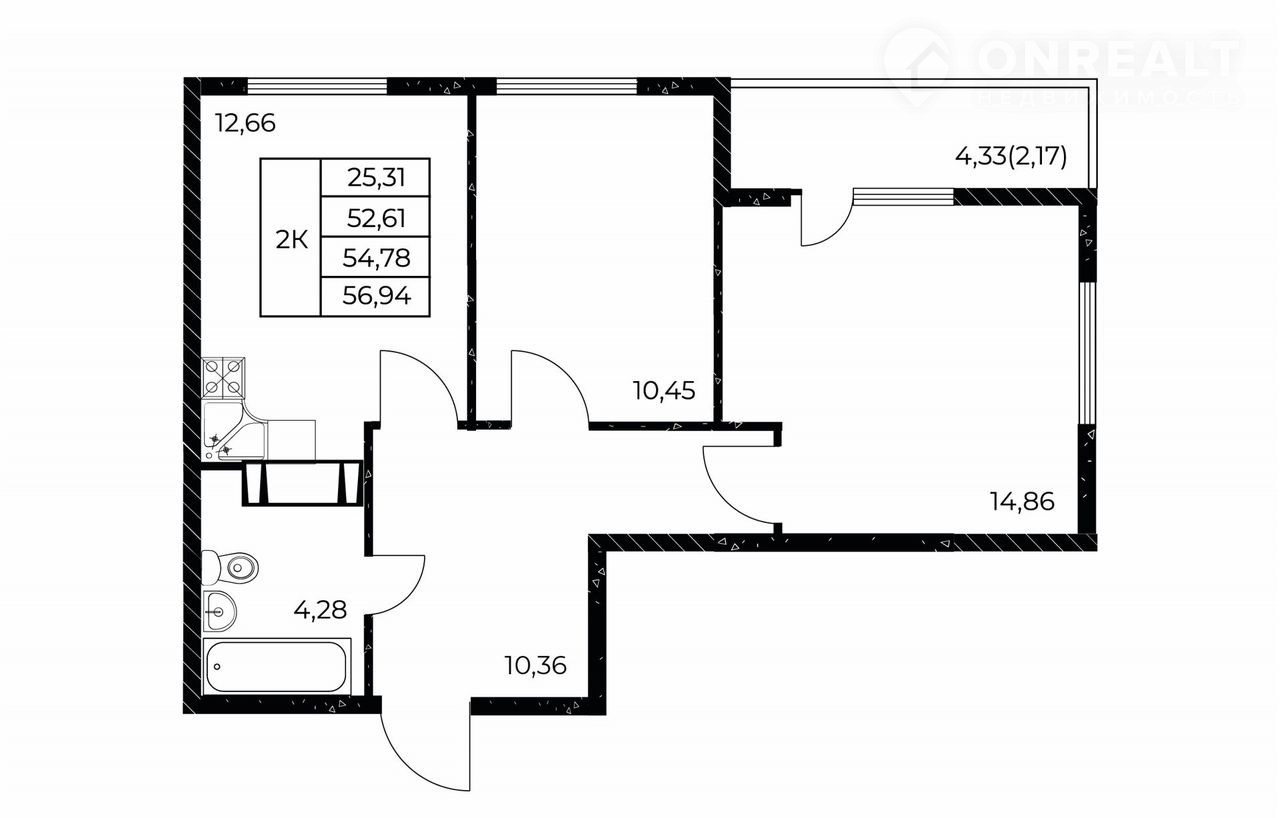 Общая площадь 56.9 м2