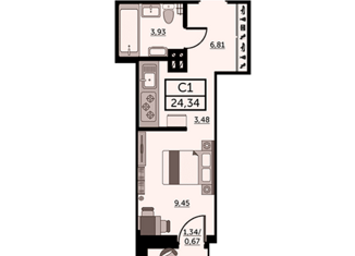Общая площадь: 24.5 м2