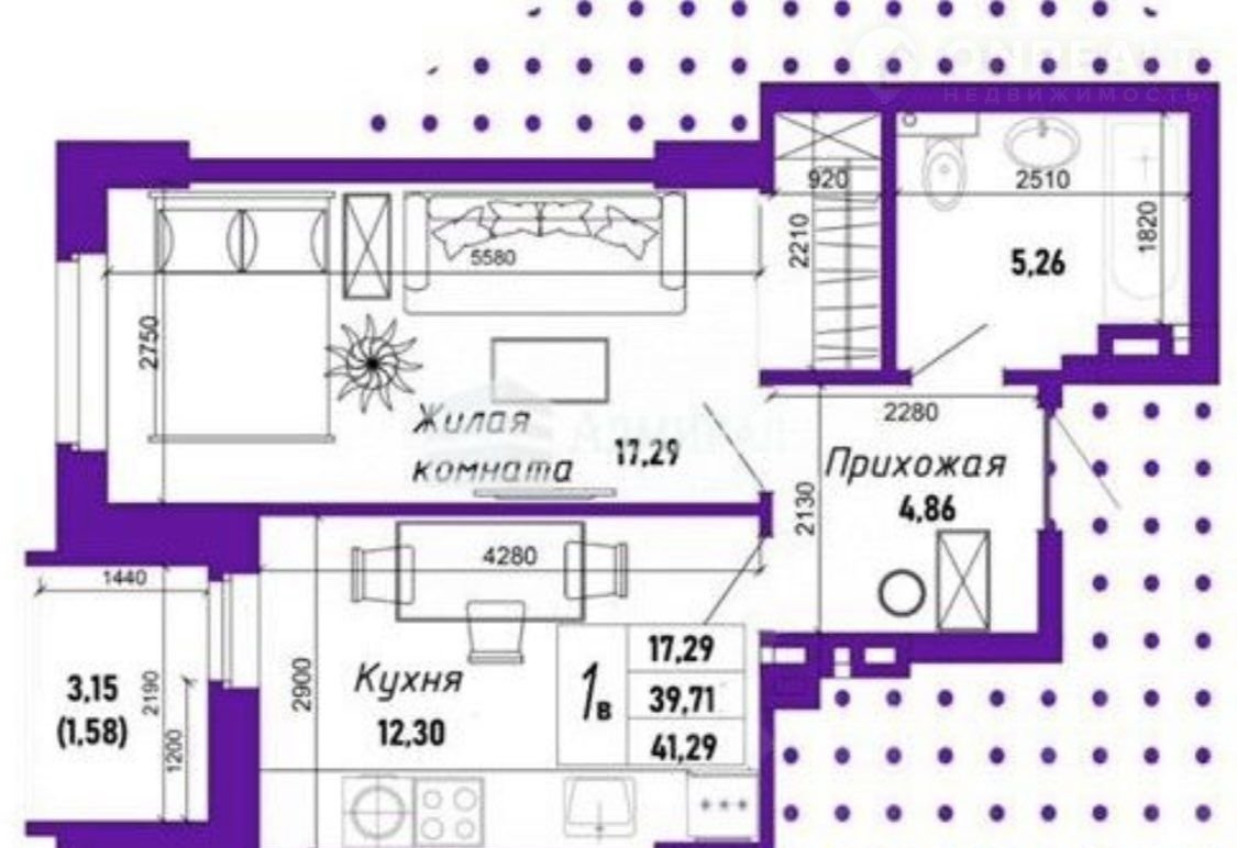 Общая площадь 41 м2