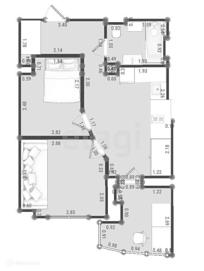 - Планировка. Три уютные комнаты с 2 выделенными шкаф купе.