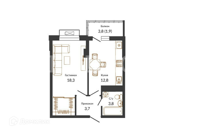 Жилая площадь 18.3 м2