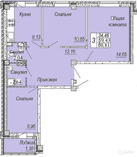 Общая площадь 60 м2