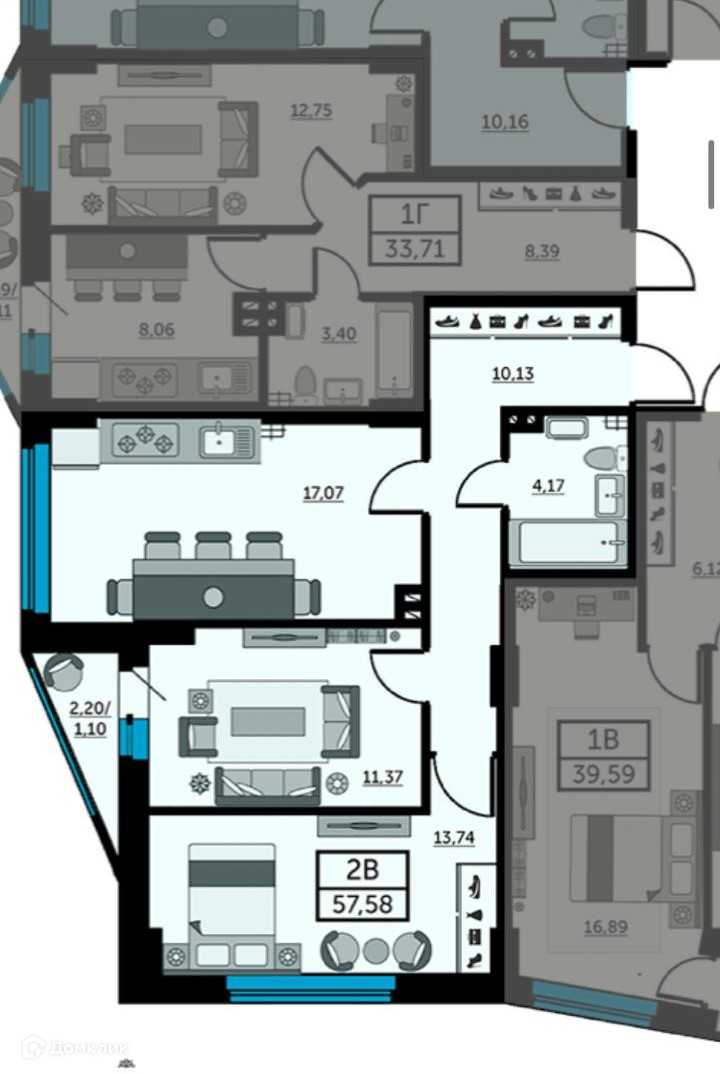 Общая площадь 57.5 м2