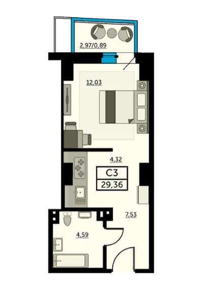 Общая площадь 30 м2