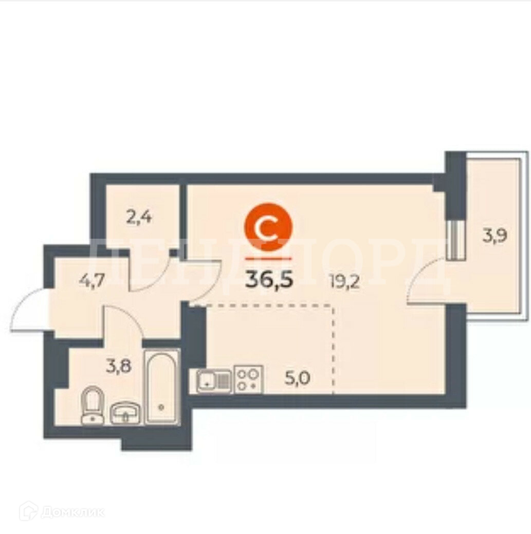 Общая площадь 37 м2