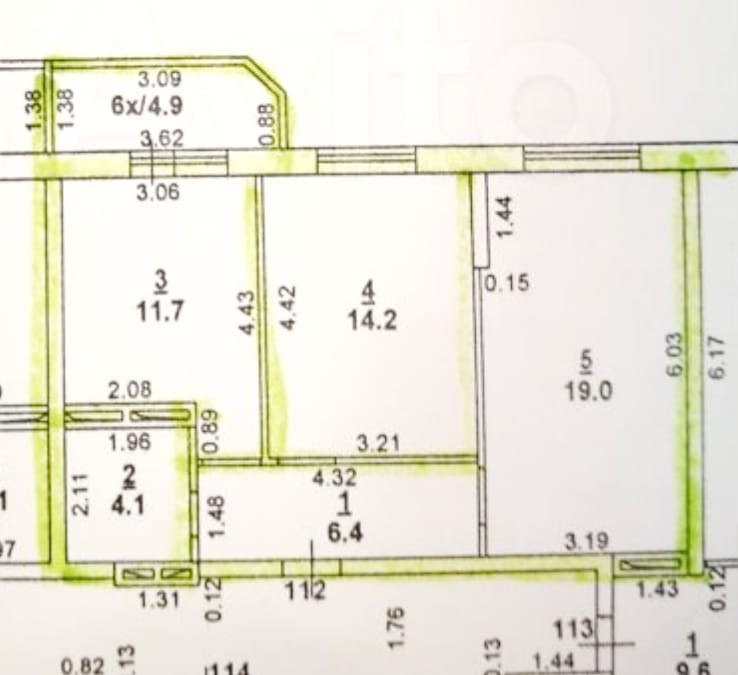 Общая площадь 61 м2