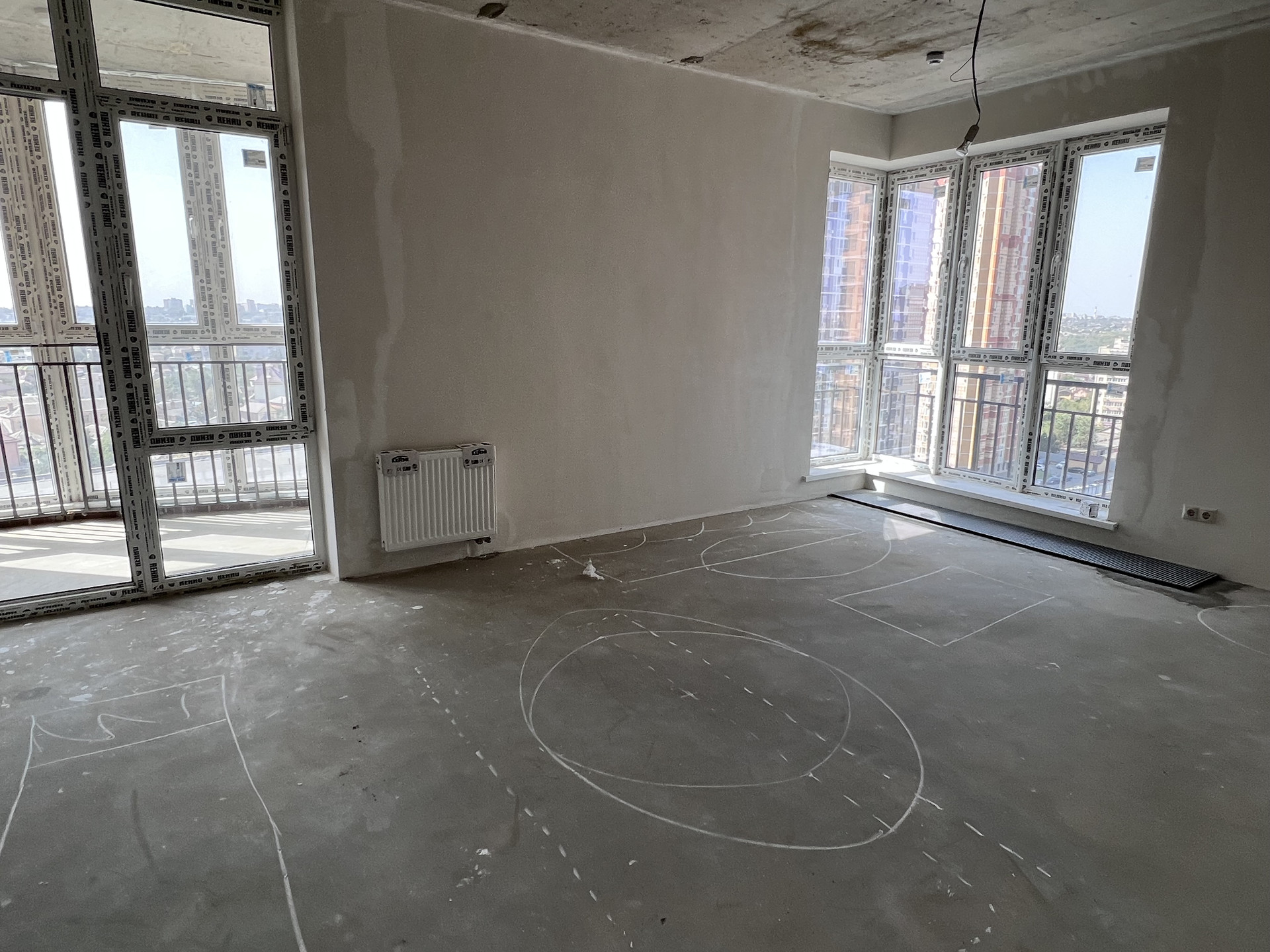 Идеальная планировка, просторный холл, две изолированные комнаты, большая кухня с двумя окнами, одно из которых витраж, общая площадь кухни-гостиной 31 КВ.М.