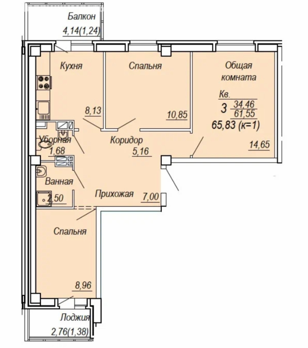 Общая площадь 66 м2