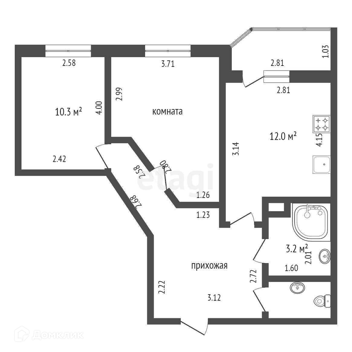 Общая площадь 58 м2