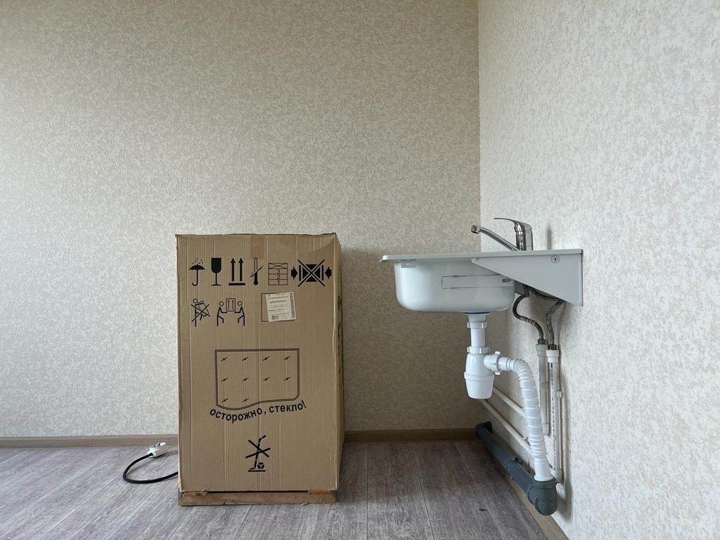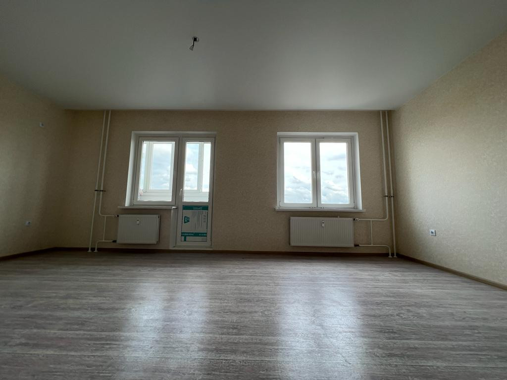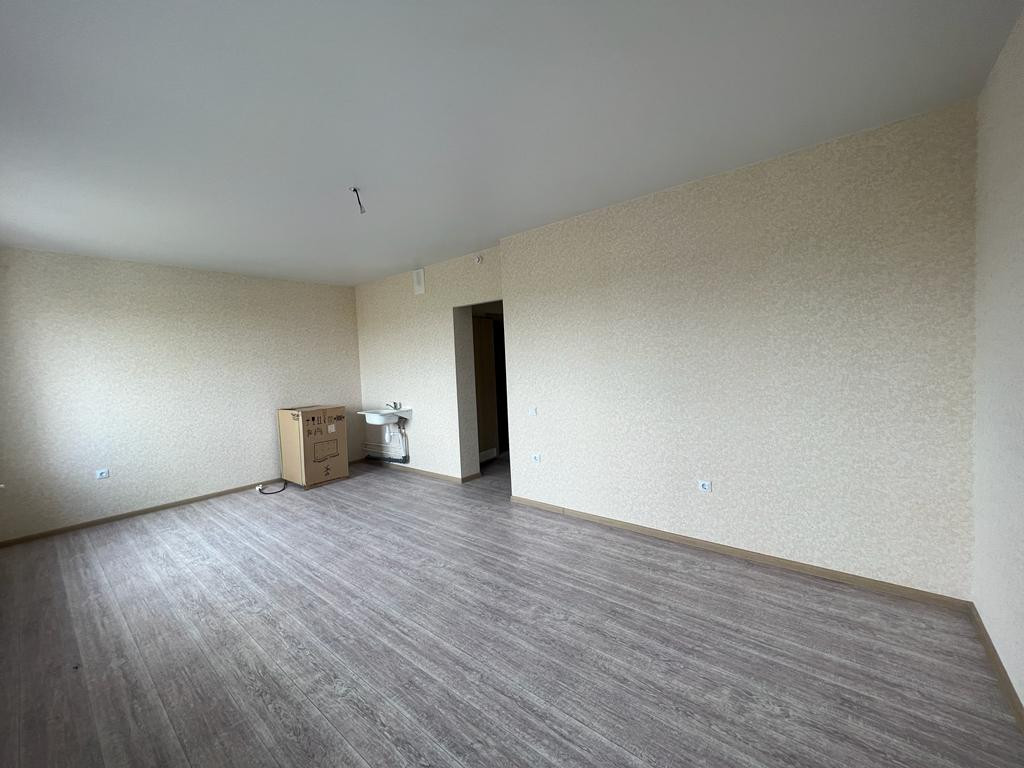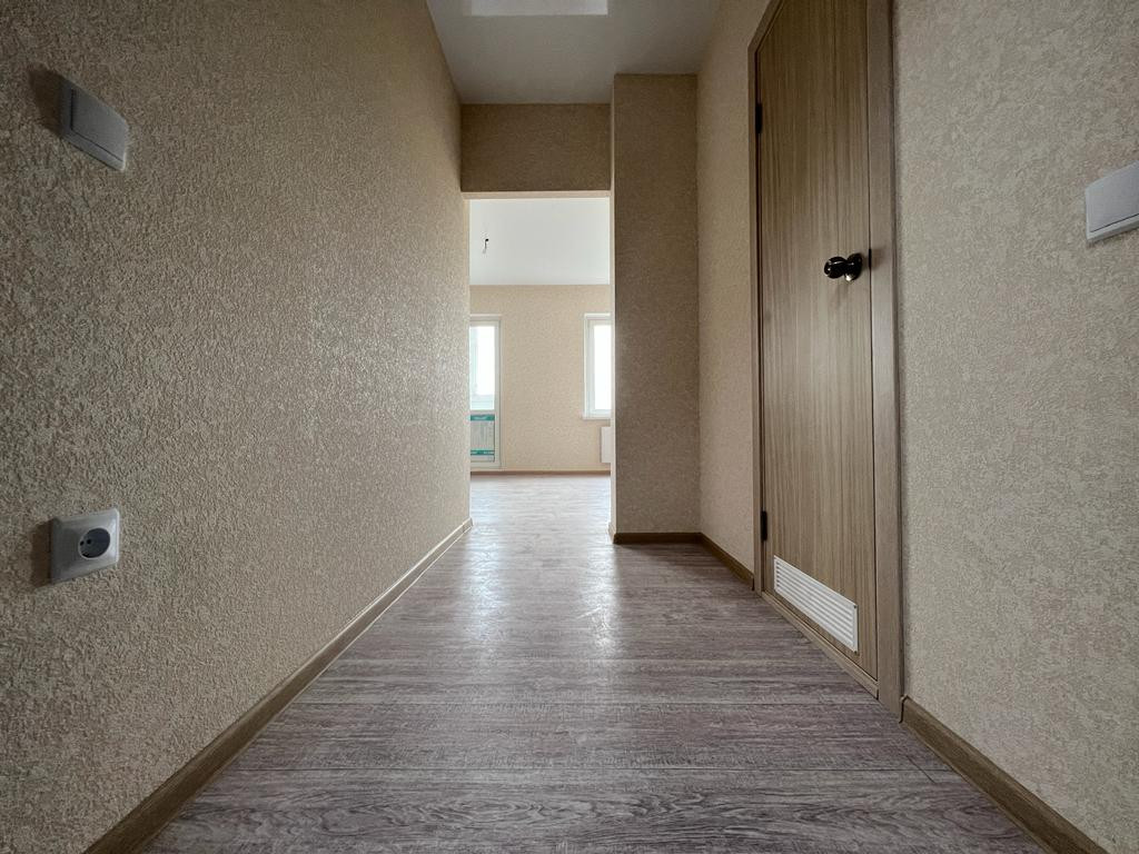 В квартире уже выполнен ремонт от застройщика: линолеум, остеклен балкон, натяжные потолки, межкомнатные двери, установлена необходимая сантехника.