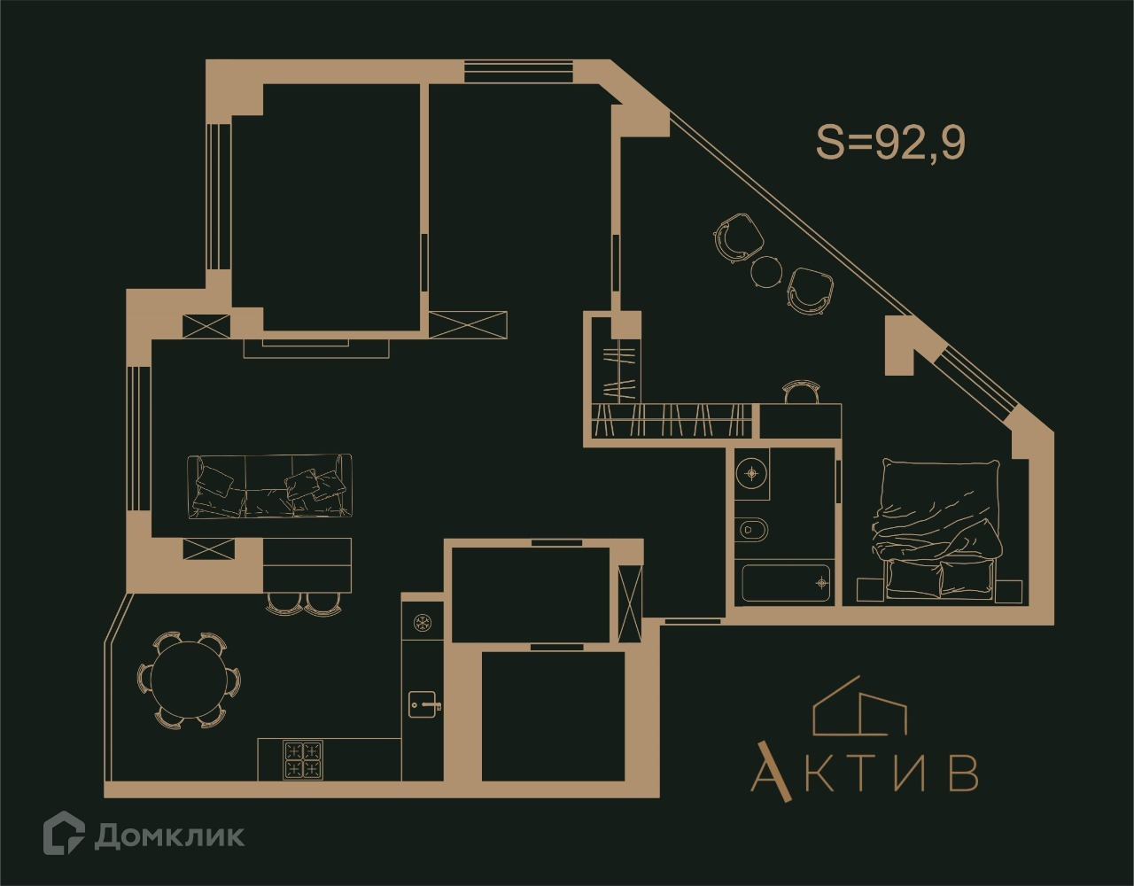Общая площадь 92.9 м2