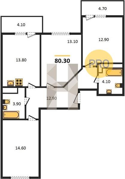 Общая площадь 80 м2