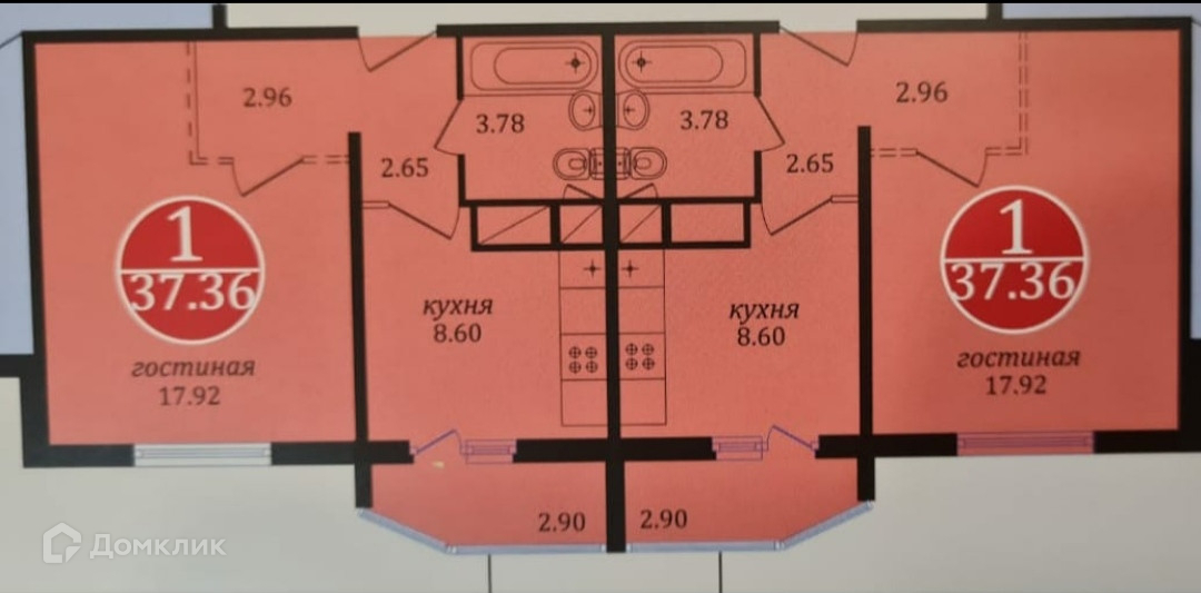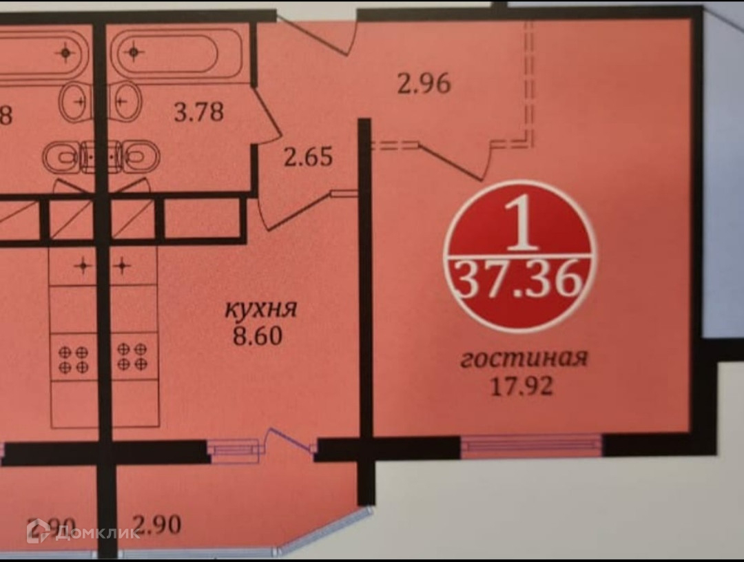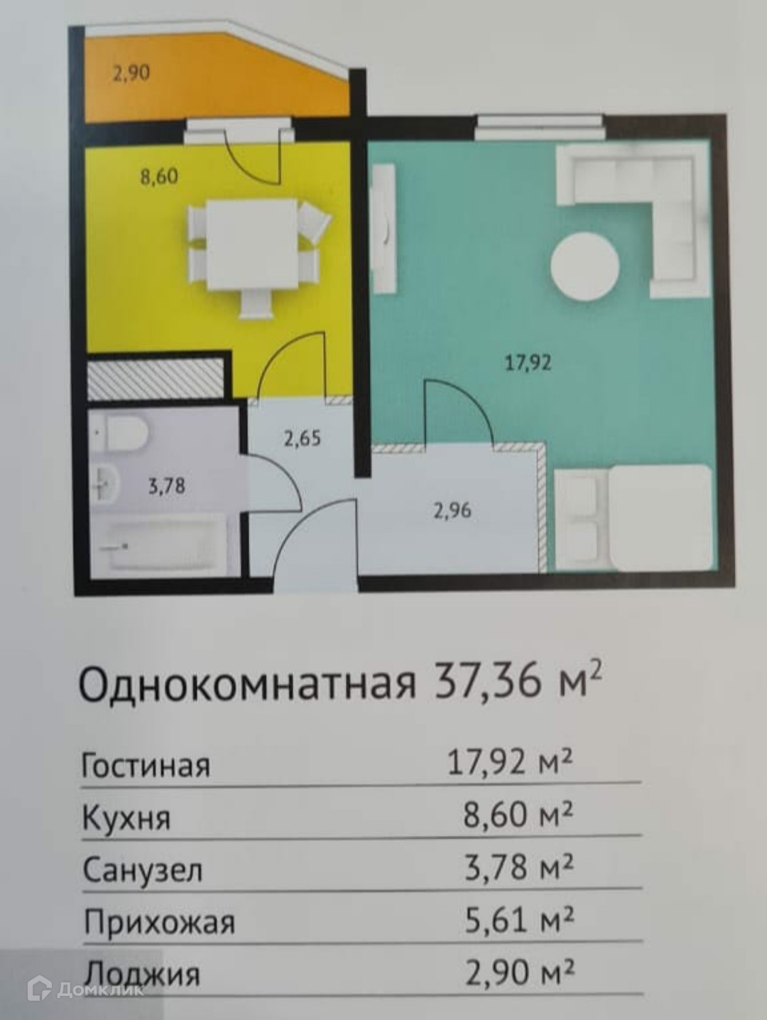 Общая площадь 37.4 м2