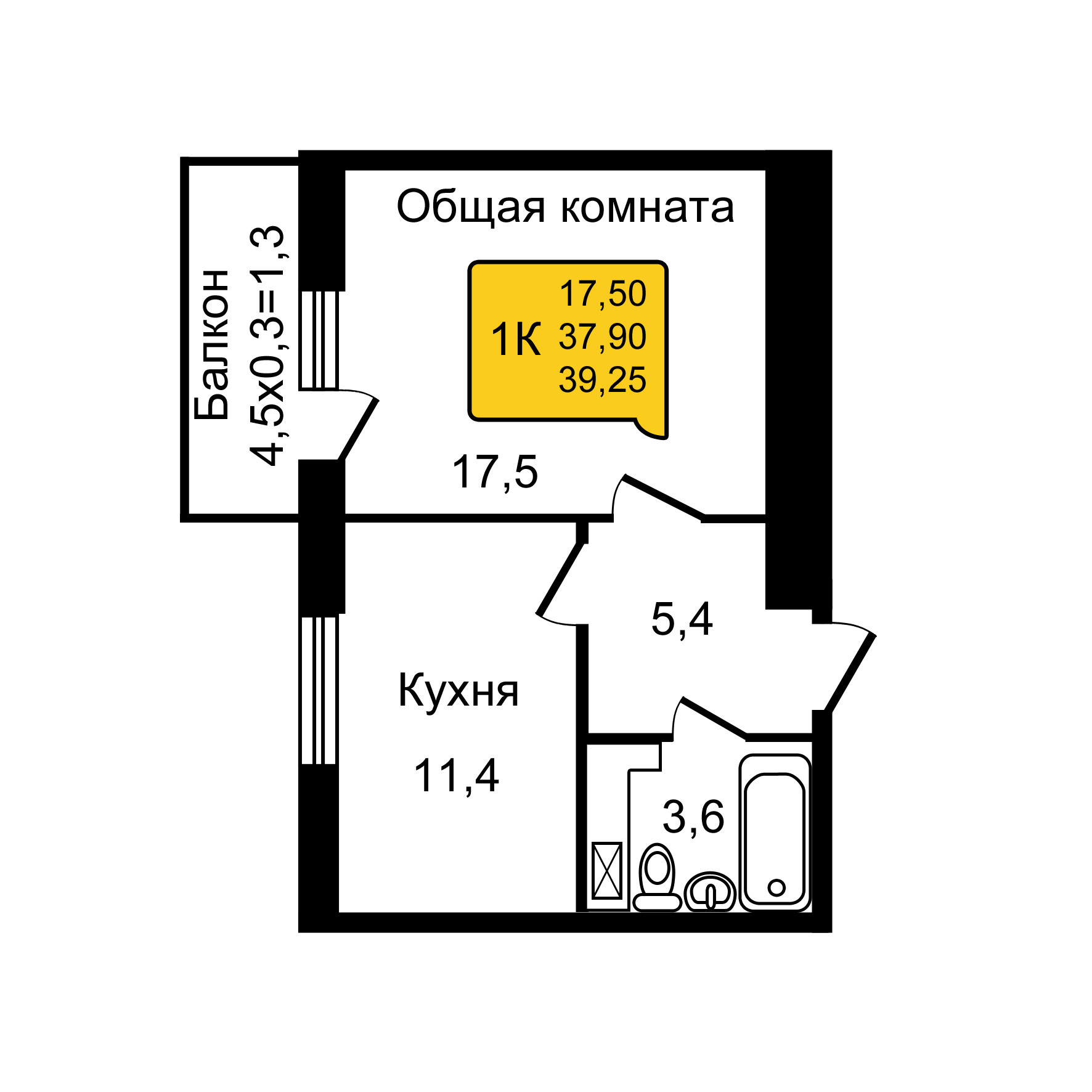 Общая площадь 40 м2
