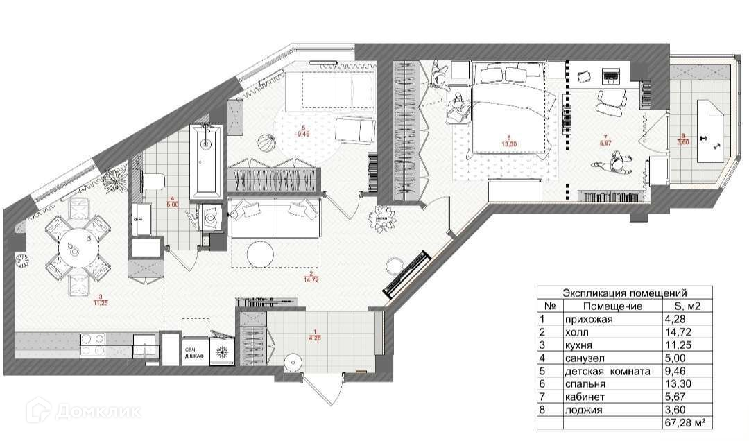 Общая площадь 67 м2