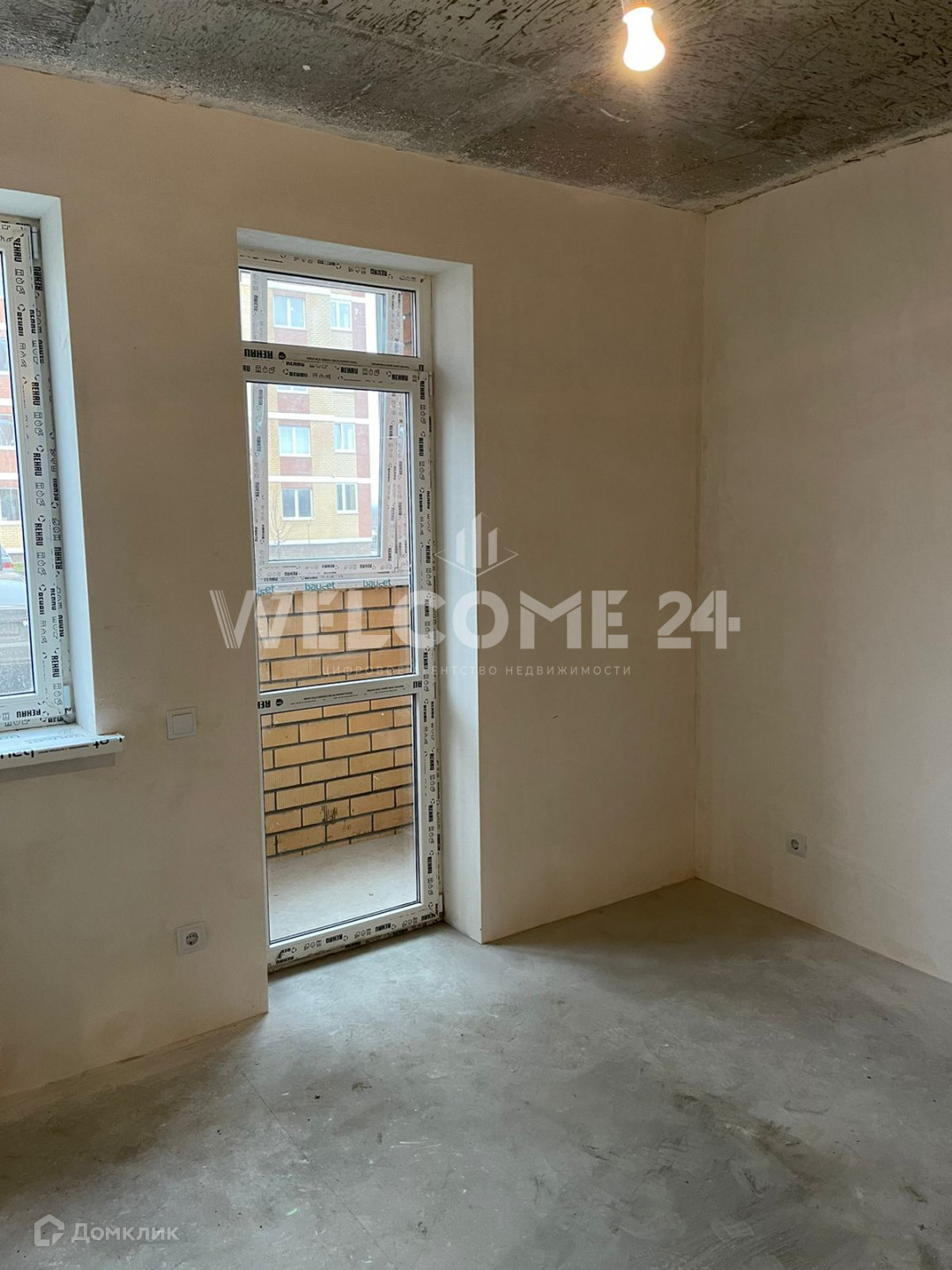 В квартирке выполнена чистовая отделка: стяжка, разводка электрики, оштукатурены стены.        Балконная дверь полностью стеклянная, это прикольно, добавляется свет и уют.  Балкон остеклен.
