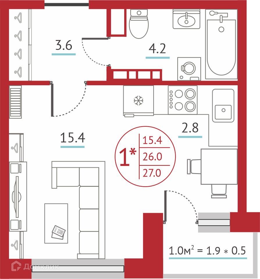Общая площадь 27 м2