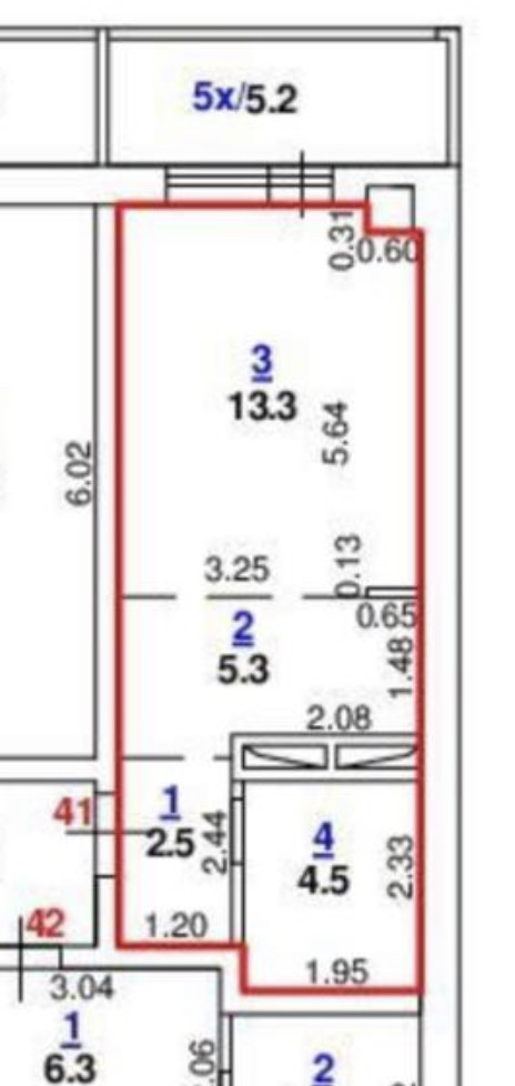Площадь кухни 5.3 м2